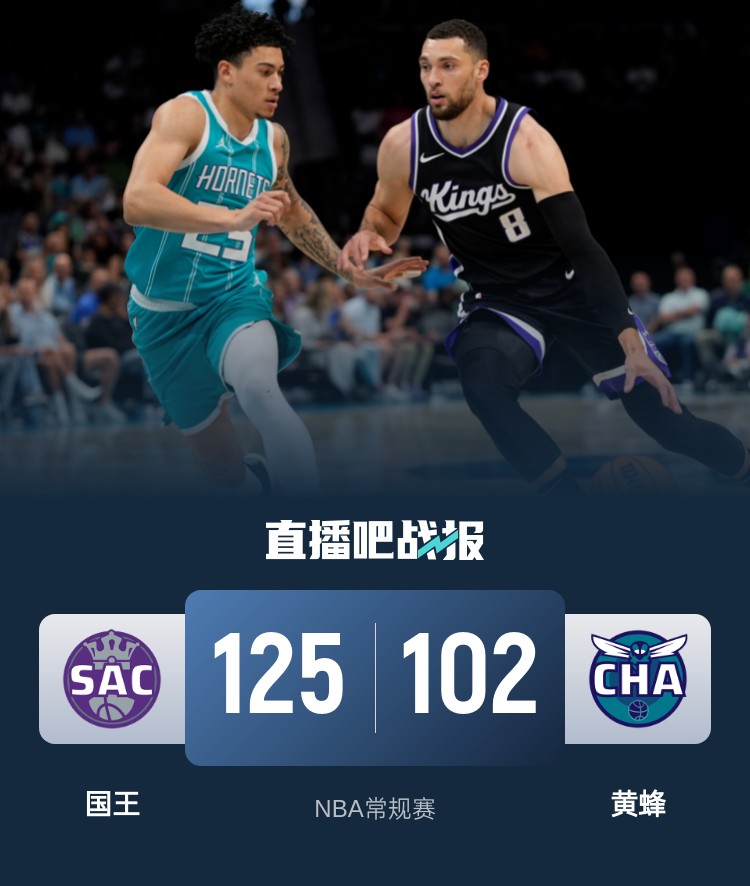 首节开局国王虽然慢热5分钟里仅得6分,但后半段逐渐回暖并轰出20-6的攻势一举反超比分;次节双方节奏起来疯狂对攻,黄蜂单节31分表现已然不错,但国王多点开花轰下42分并在上半场就拿到19分的领先。休息归来国王继续掌控局面,末段2分钟里连续飙进4记三分势不可挡并在第三节就拿到26分领先早早奠定胜局,末节国王短暂保留主力后早早鸣金收兵。最终,国王客场轻取黄蜂结束3连败。