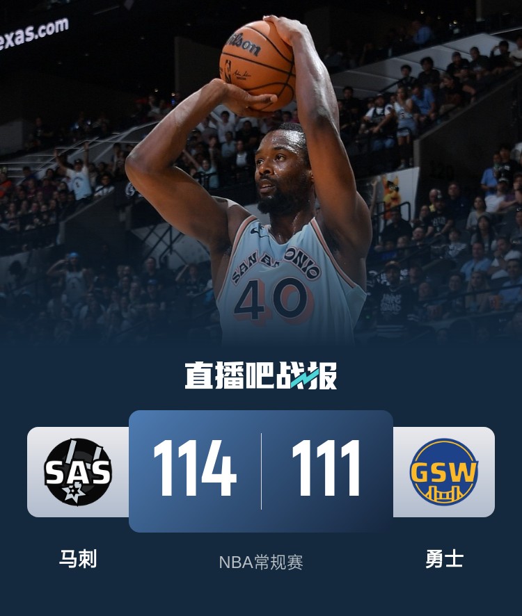 马刺(33-47):凯尔登21分8板3助2断、卡斯尔21分3板5助2断、巴恩斯20分4板2助、尚帕尼14分4板4助2帽、保罗12分5板4助、马穆凯拉什维利11分8板1助、瓦塞尔11分5板3助、韦斯利4分1板2助、比永博5板。