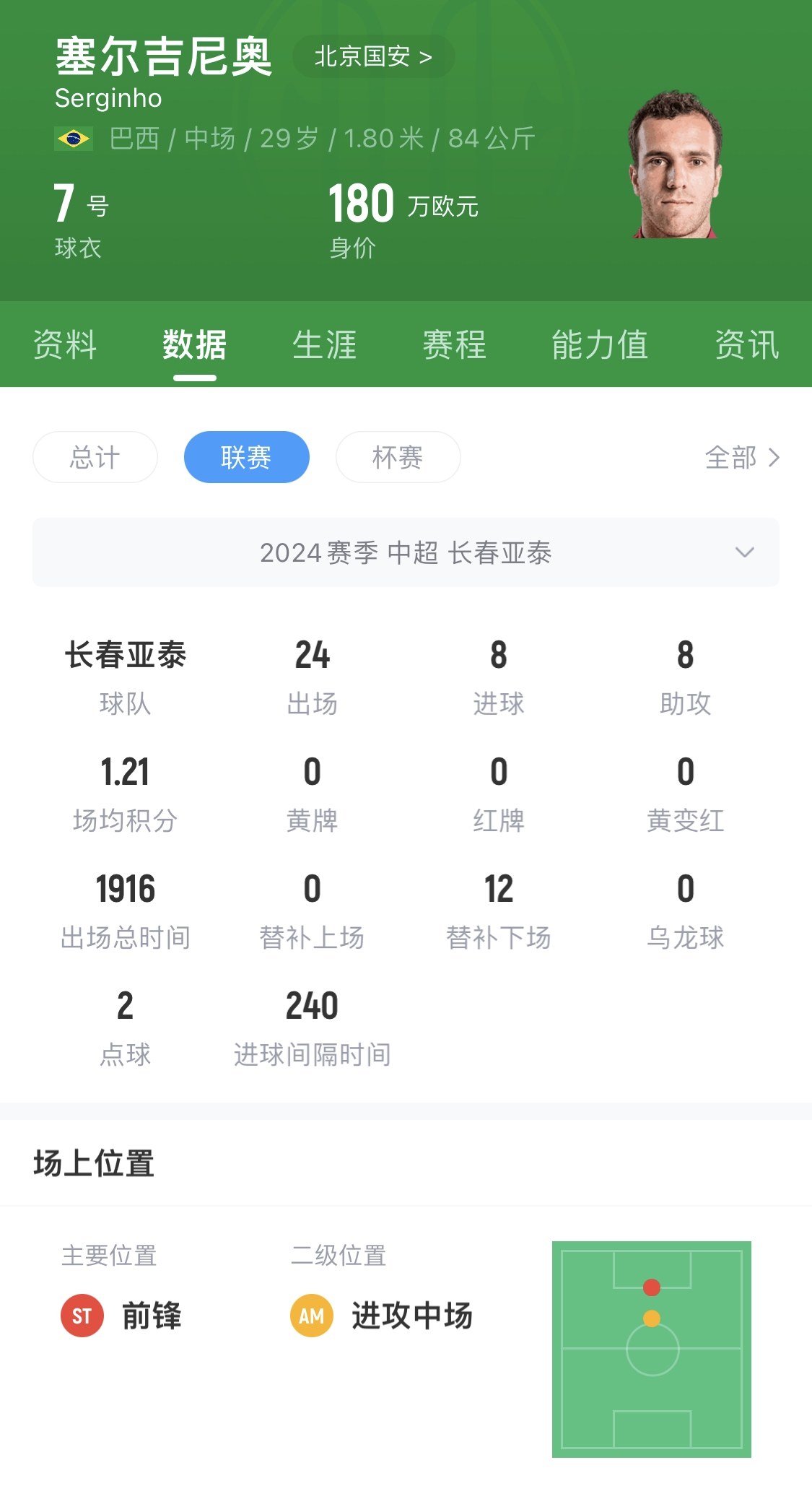 今年2月2日,北京国安宣布塞尔吉尼奥加盟。