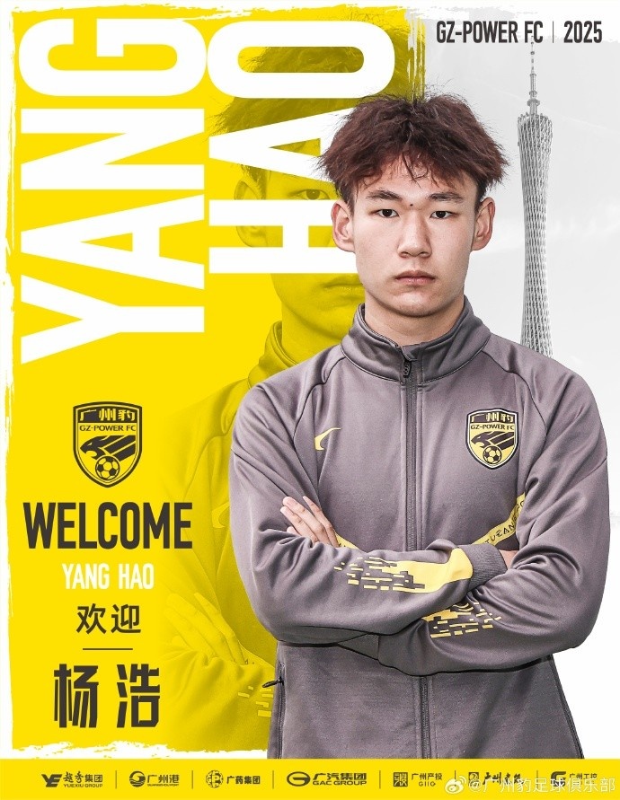 2月16日讯 广州豹俱乐部官方宣布,20岁的前广州队球员杨浩正式加盟。