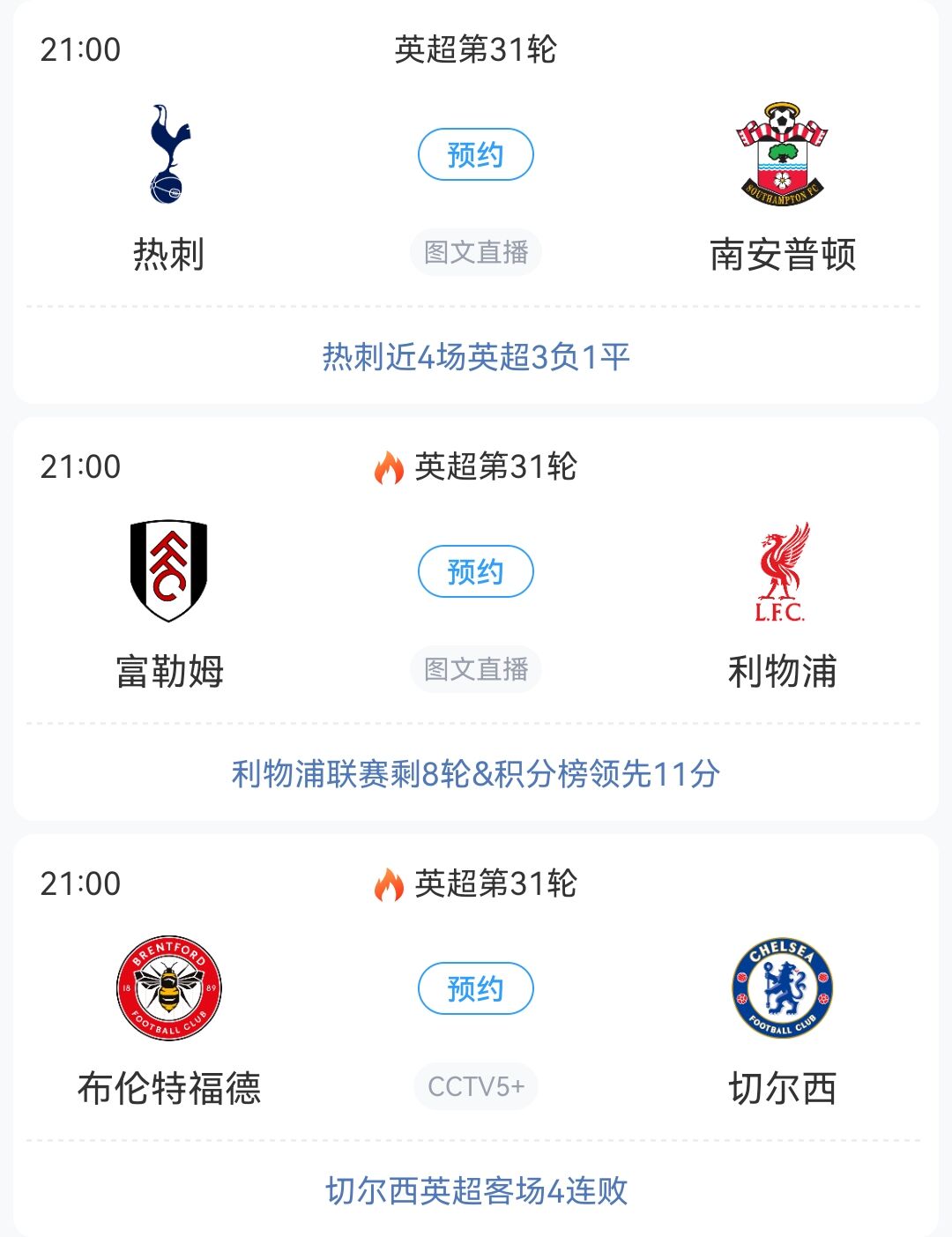 21:00 富勒姆vs利物浦