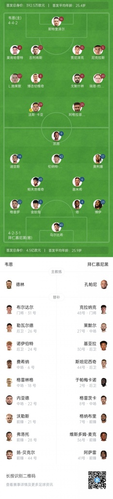 8月28日讯 北京时间02:45,德国杯第1轮,拜仁慕尼黑对阵德丙联球队韦恩,赛前首发阵容出炉!
