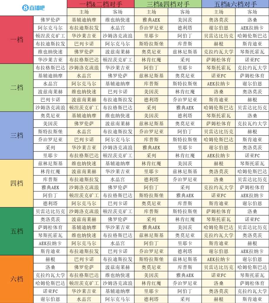 第5档:贝雷达比历克、奥洛莫茨、萨姆松体育、琴斯托霍瓦、AEK拉纳卡、斯肯迪亚