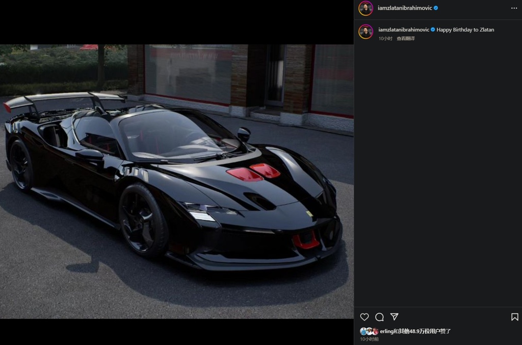 伊布已经多次在各种场合表达过自己对法拉利的喜爱:去年过生日时他就曾晒出自己的黑色法拉利SF90 XX Stradale跑车。