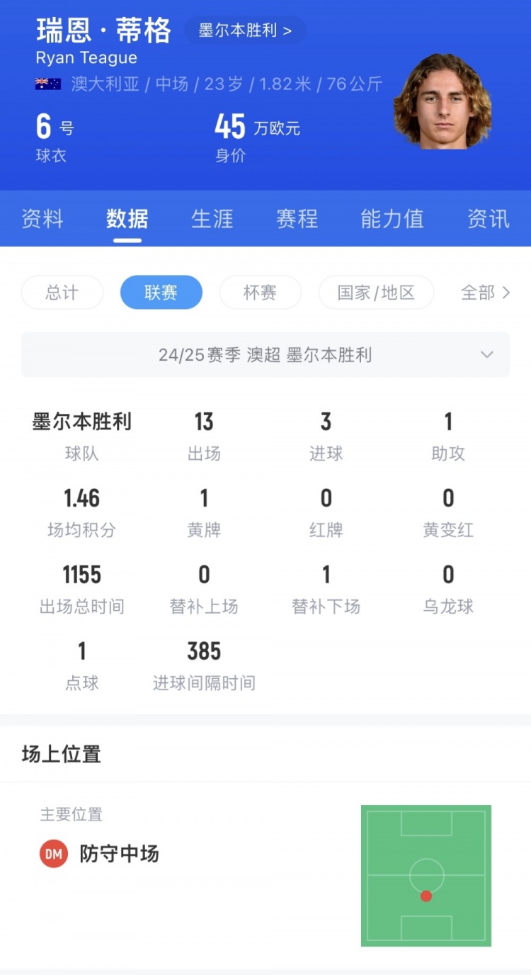 1月24日讯 据《澳洲人报》报道,23岁的墨尔本胜利中场、原U17队长瑞恩-蒂格(Ryan Teague)正在考虑为中国效力。归化专家“Jallo_Tang”称,由于蒂格在2024年4月代表澳大利亚U23队出战亚洲杯,有关部门需证明其在首战时已具备中国国籍联系,才能具备转换协会的资格。