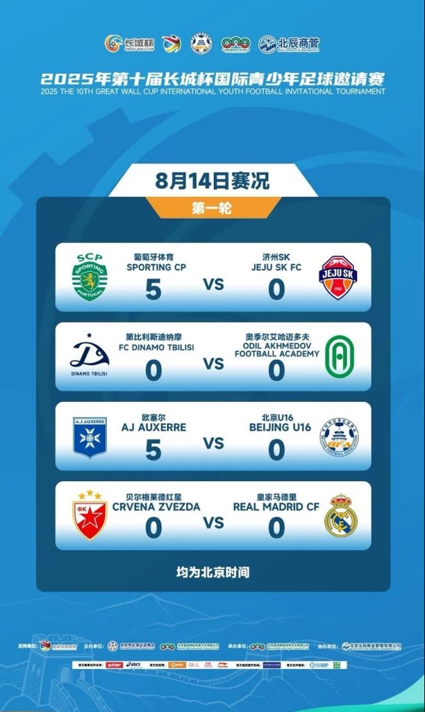 据悉,本届赛事吸引了包括皇家马德里、葡萄牙体育、欧塞尔、贝尔格莱德红星、第比利斯迪纳摩、奥季尔·艾哈迈多夫足球青训学院、济州SK以及东道主北京在内的8支优秀的国际青训俱乐部参加,比赛将持续至8月19日。在比赛期间,来自各国的球员在绿茵场上展开激烈角逐的同时,还将通过丰富的文化活动感受中华传统魅力。