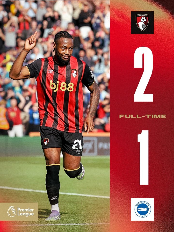 09月14日讯 英超第4轮,伯恩茅斯2-1击败布莱顿,豪取英超三连胜,升至积分榜第4位。